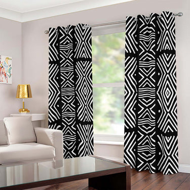 African American Curtains Black and White Grommet Style (Two-Piece)