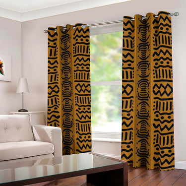 Kuba Print Tribal Pattern Curtains Grommet Brown (Two-Piece)