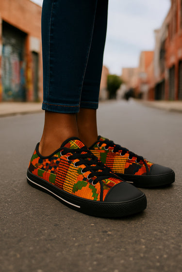 Step up your style game with our African Print Sneakers for ladies! These tribal sneakers exudes authentic Afro patterns that addS a bold and adventurous touch.