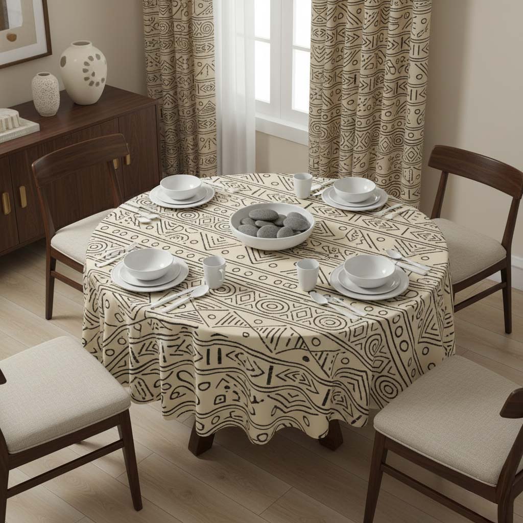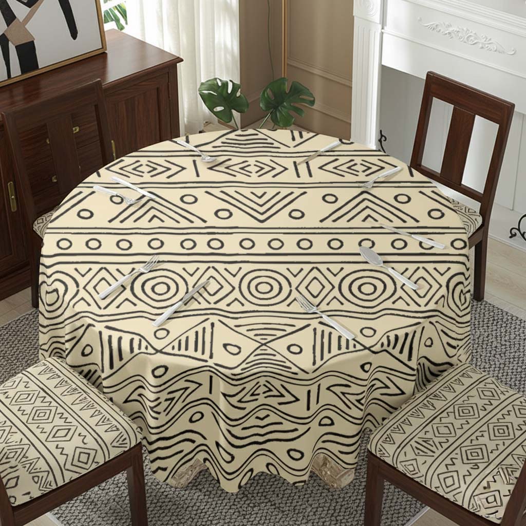 African Print Tablecloth Waterproof Beige | Afrocentric Elegance