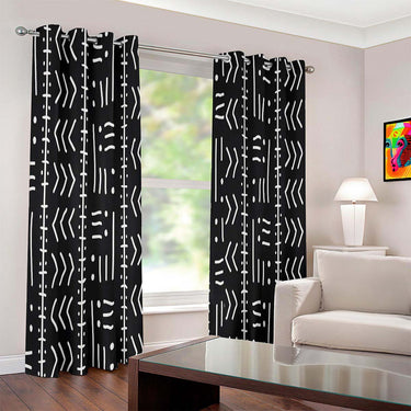 African Geometric Blackout Curtains Black and White (Two-Piece)