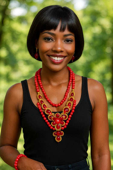 Discover the vibrant beauty of African beads and sets, expertly crafted to celebrate cultural heritage and individuality. These accessories carries a story of tradition and empowerment.