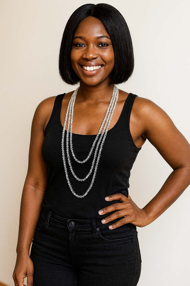 African Bead Jewelry Crystal Layered Necklace | Handmade
