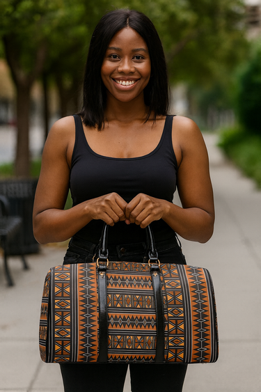 Get ready to travel in style with our African Travel Bag featuring a unique Leather Geometric Afro Print design. This bag truly stands out, making a statement wherever you go. Perfect for the adventurous and fashion-forward traveler!
