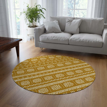 Colourful Round Rug African Carpet Mudcloth Print Gold