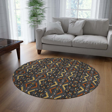Mudcloth Round Rug in Living Room Modern Carpet Colourful