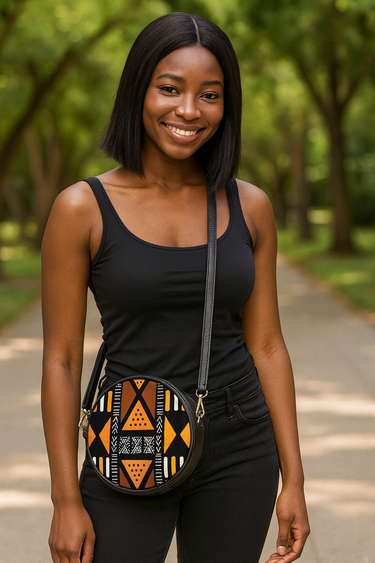 Introducing the African Bag Round Sling Tribal Print - a stylish and functional bag that combines traditional African design with contemporary fashion. Made with high-quality materials, this bag is perfect for everyday use or for adding a unique touch to any outfit. Elevate your style and support African artisans with this one-of-a-kind bag!