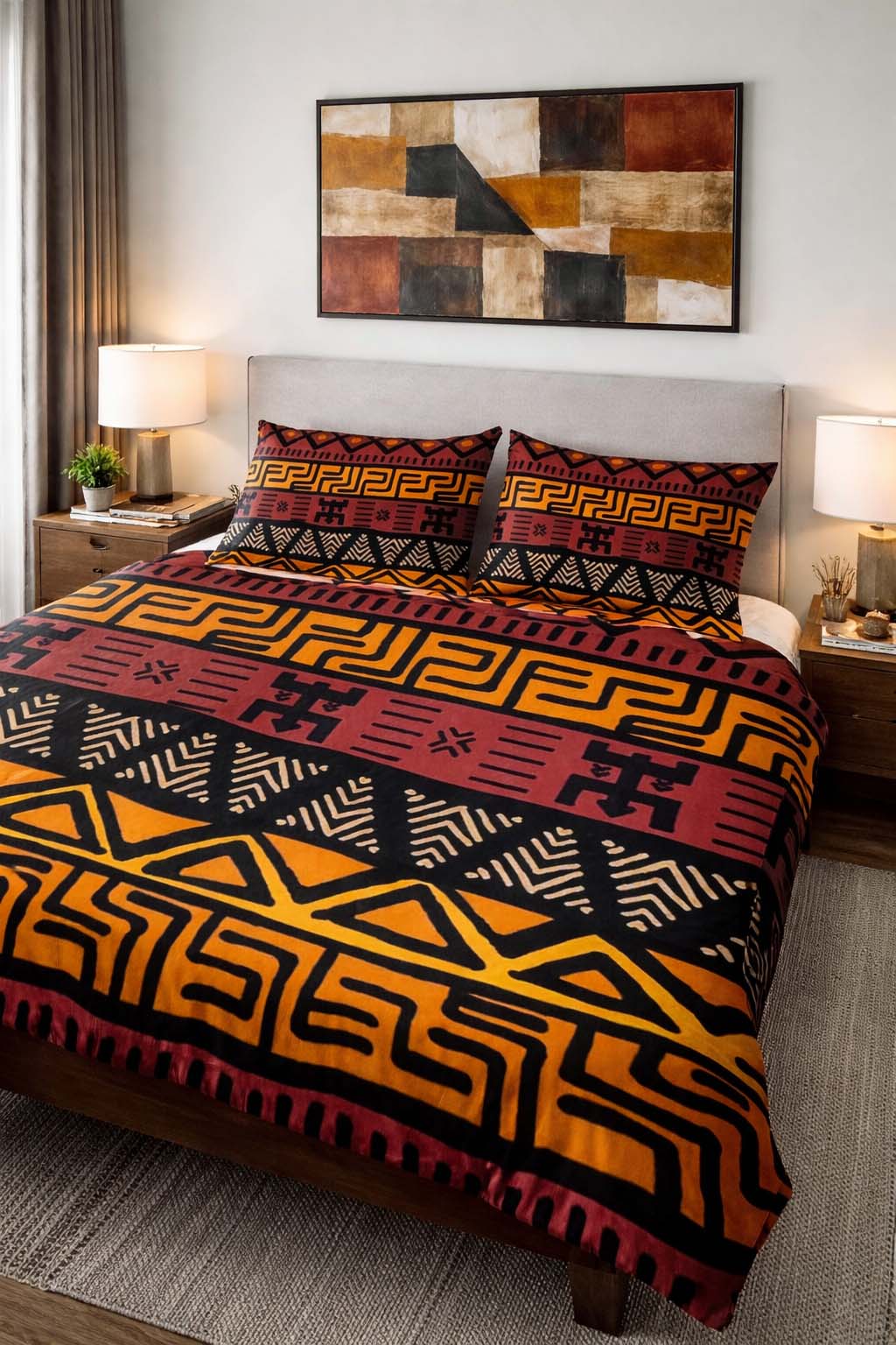 Bogolan-Inspired African Print Bedding Set – Duvet Cover & Pillowcases