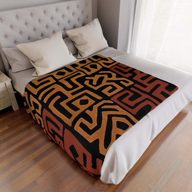 African Throw Blanket Kuba Print Fleece Fabric