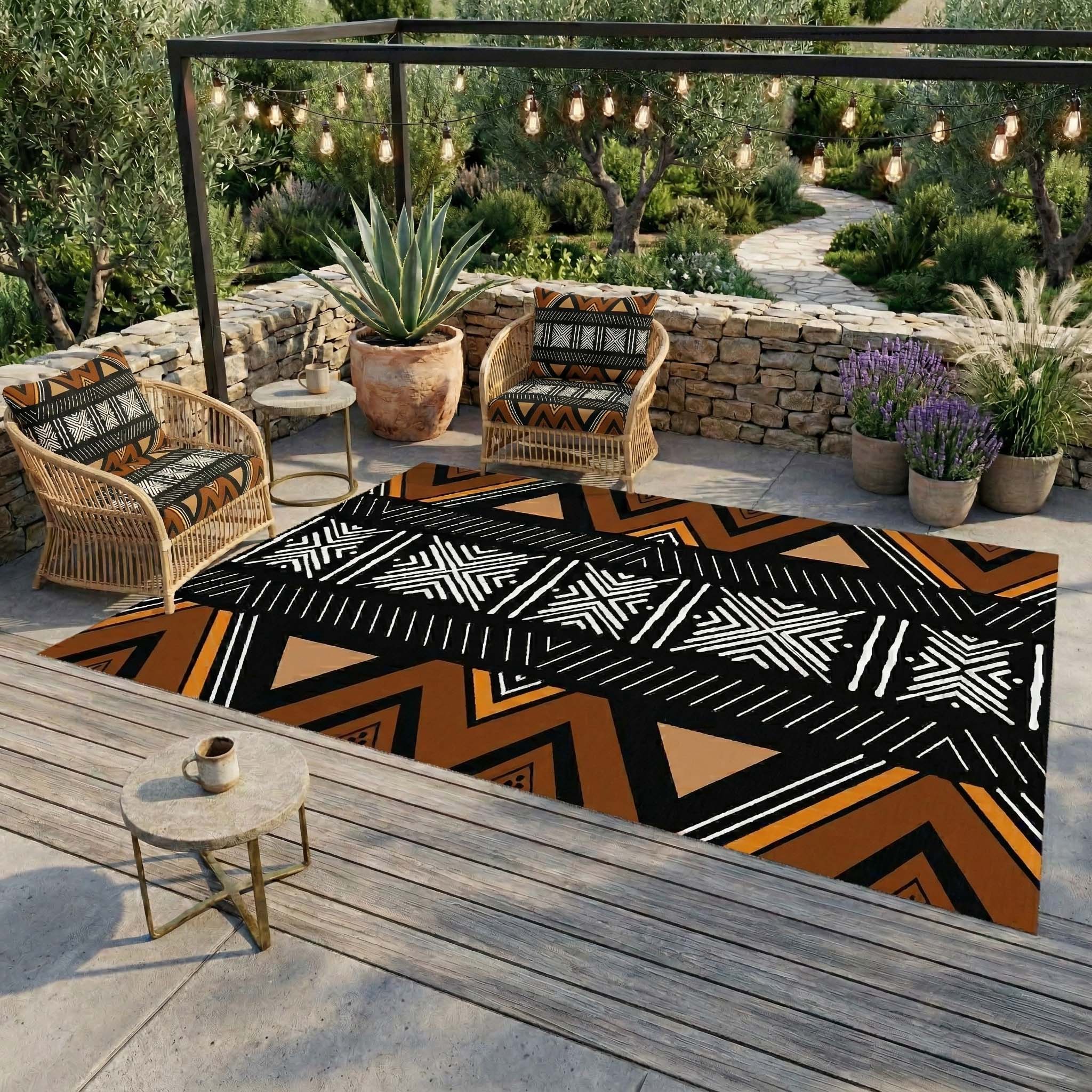 Afrocentric Zigzag Outdoor Rug - Unique Tribal Carpet