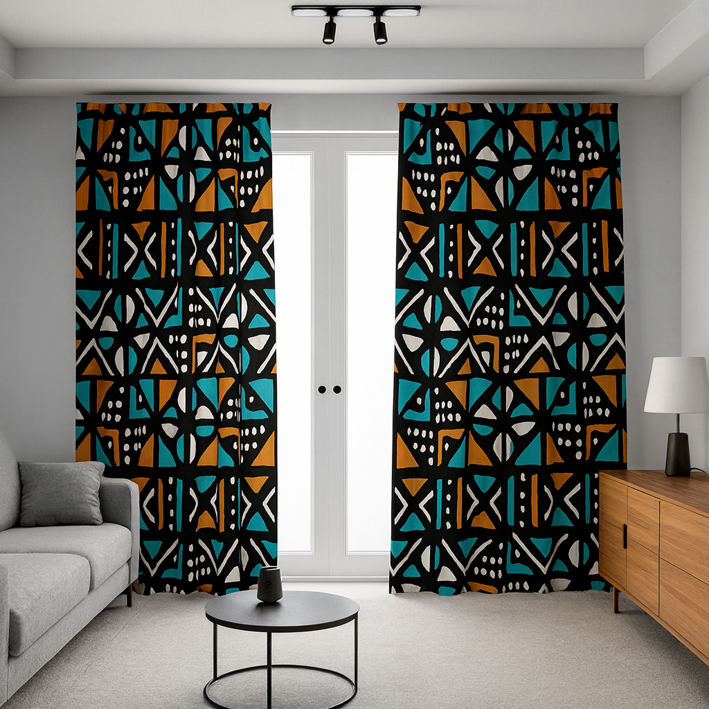 Set the mood and block out the light with our Green Turquoise Curtains Blackout Mudcloth Print ! Perfect for creating a bold and adventurous atmosphere while also providing privacy and energy efficiency. Take a risk and transform your space! Includes two panels for full coverage.