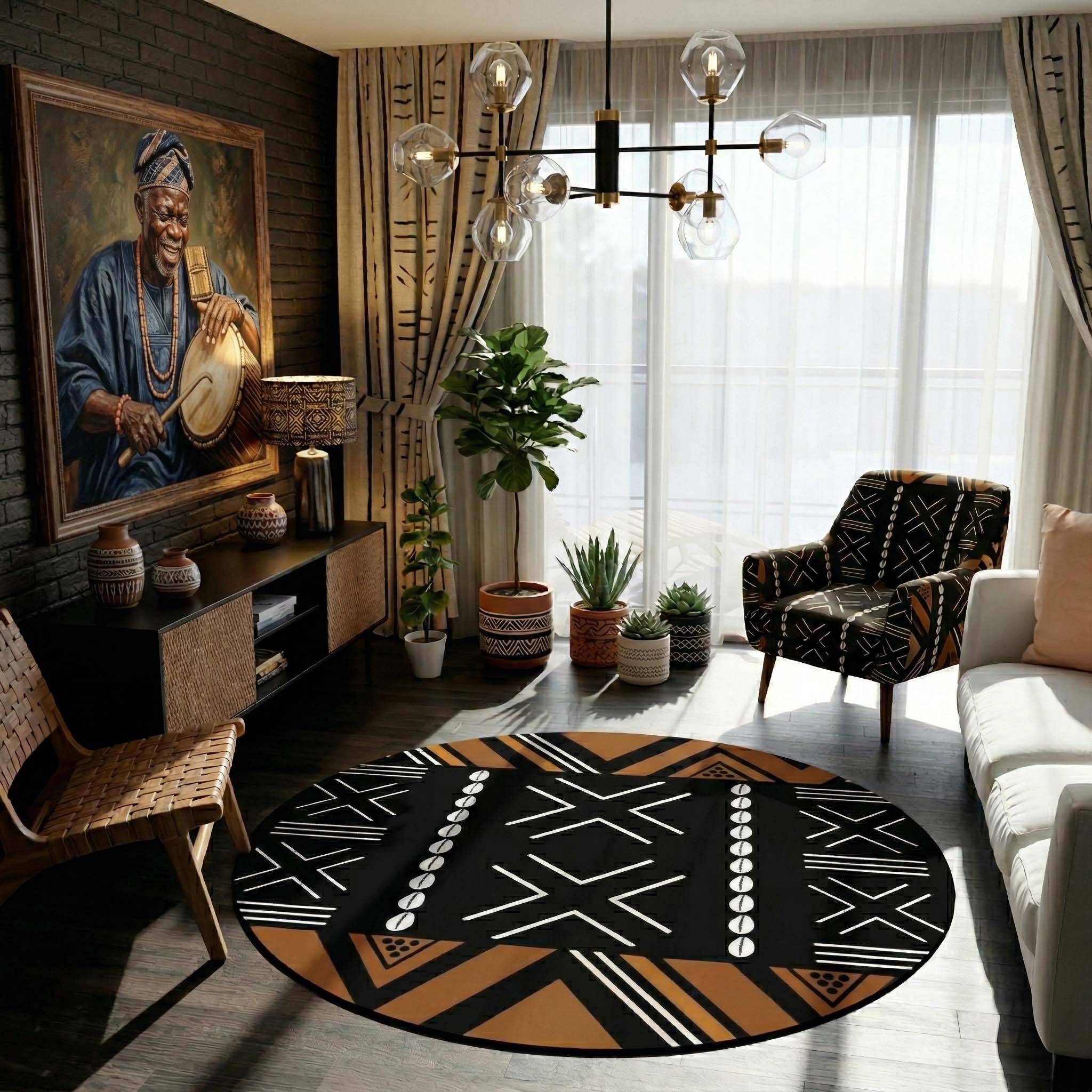 Tribal Round Area Rug - Cultural Statement Piece