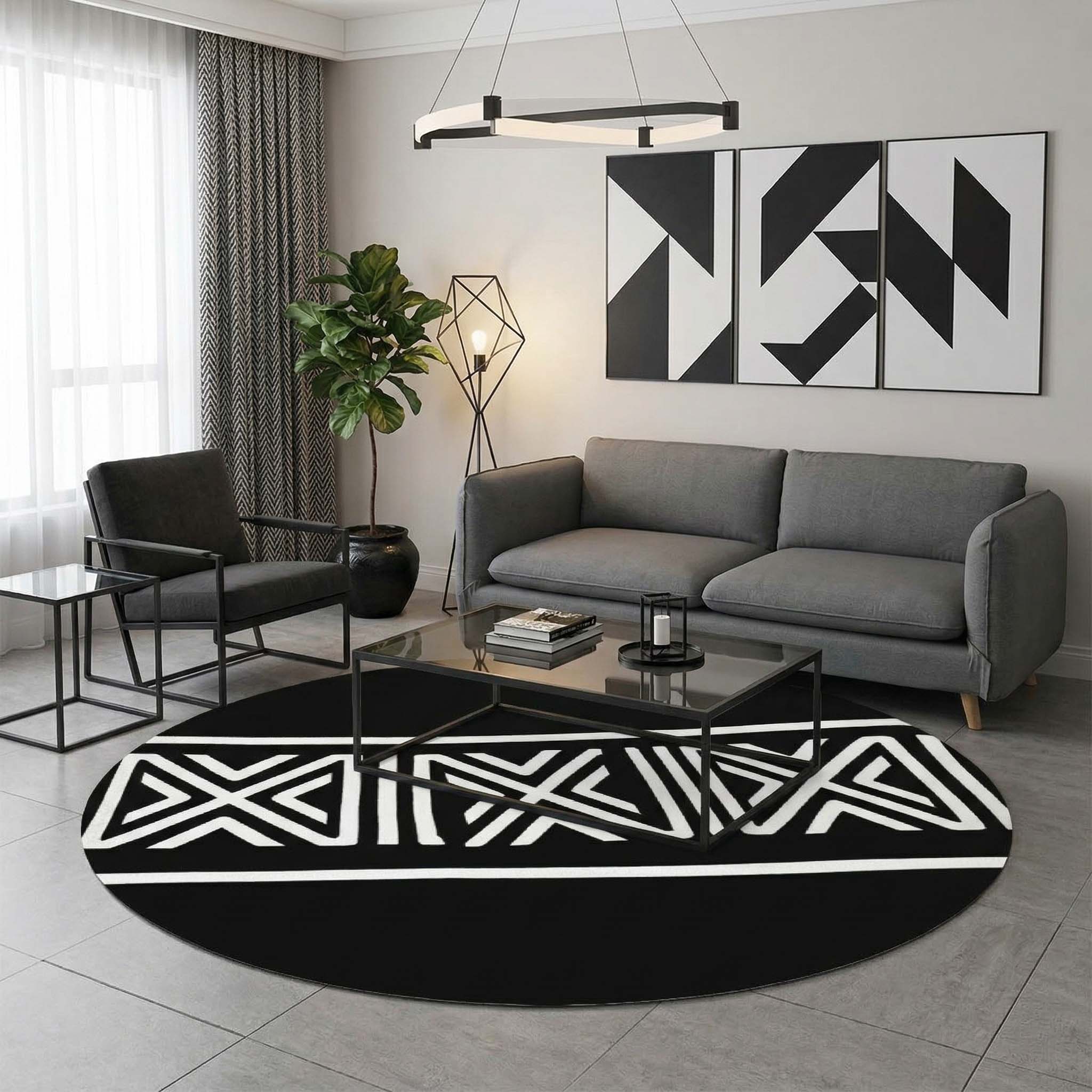 Black and White Round Rug Tribal Circle Carpet
