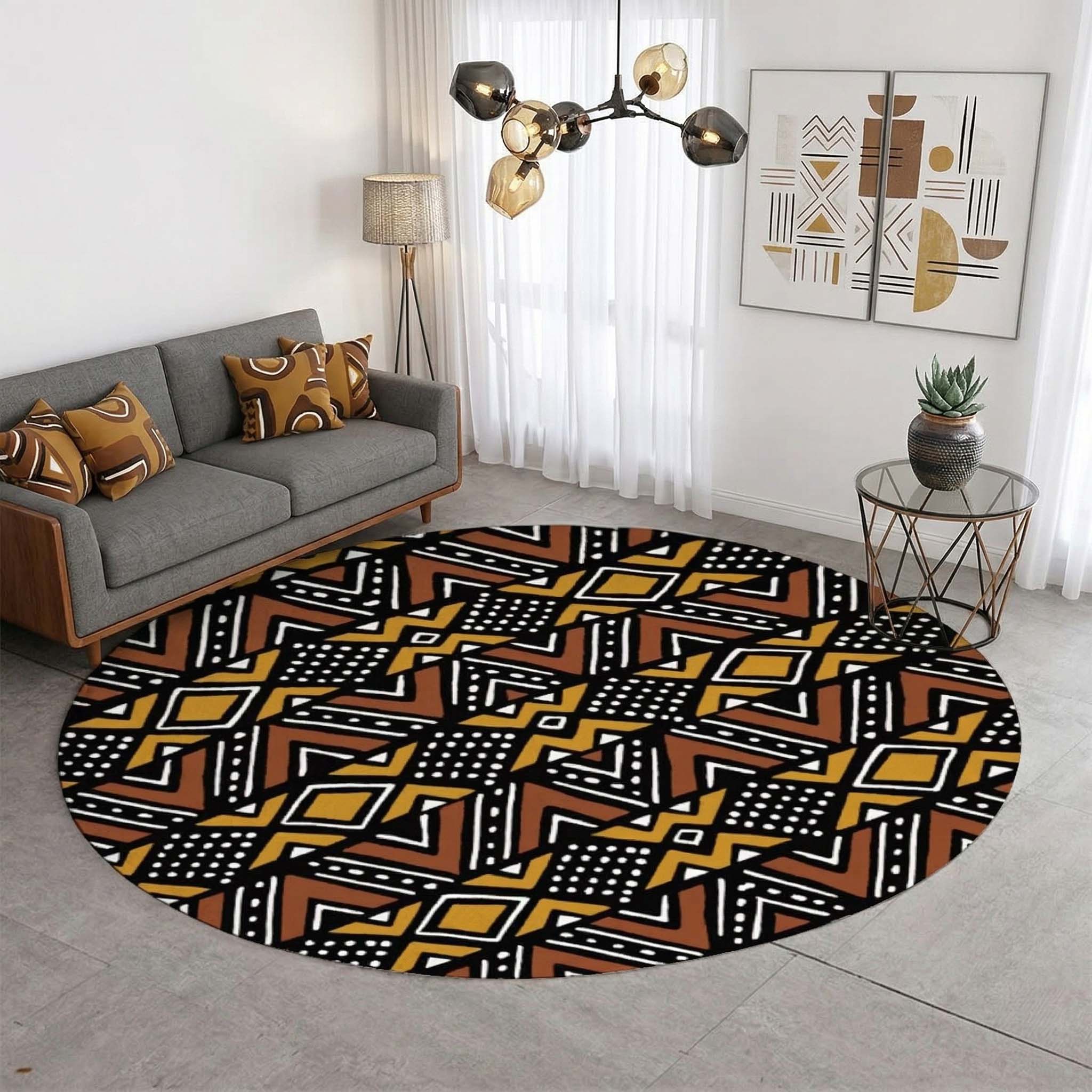 Mudcloth Tribal Round Rug – African-Inspired Design