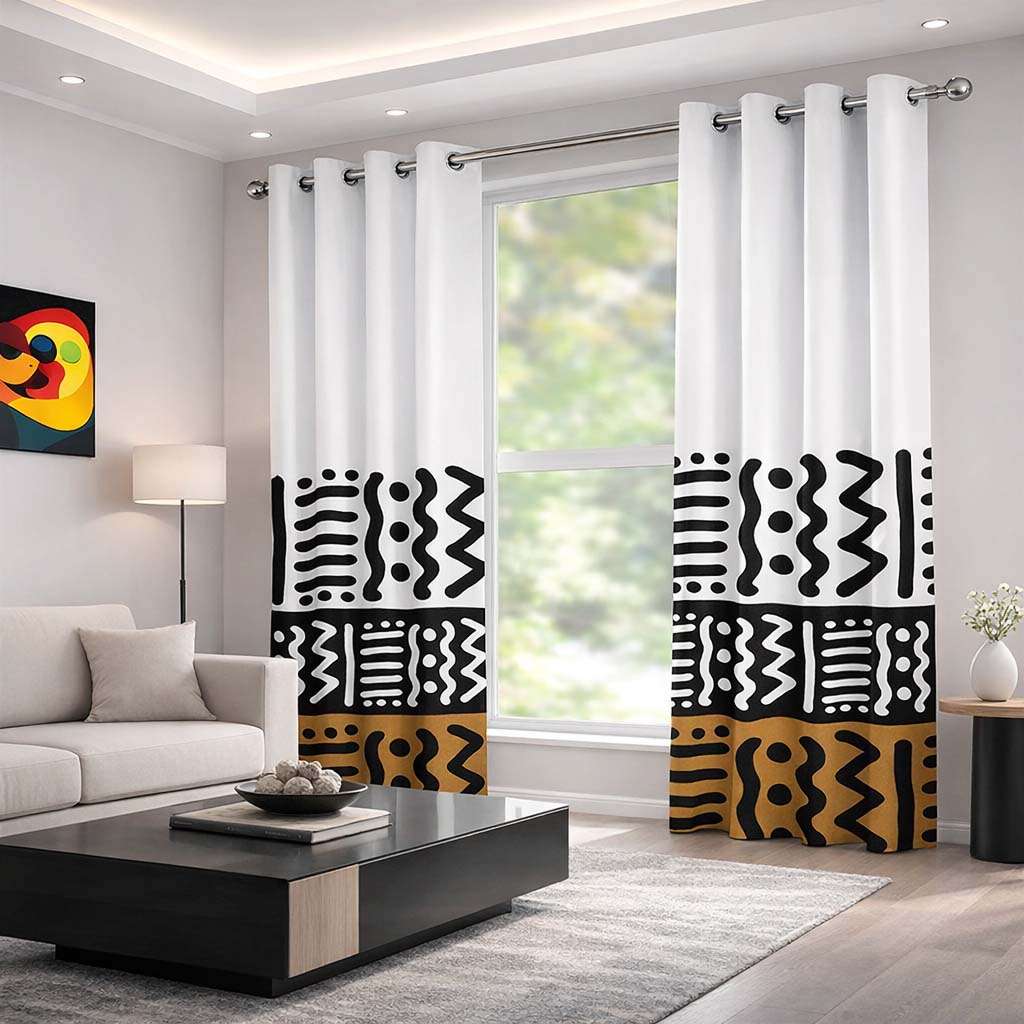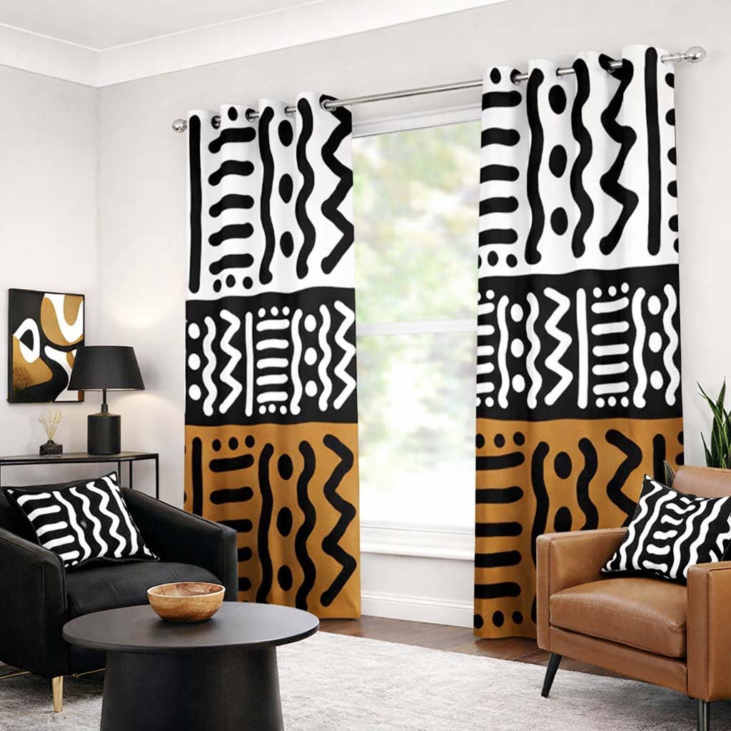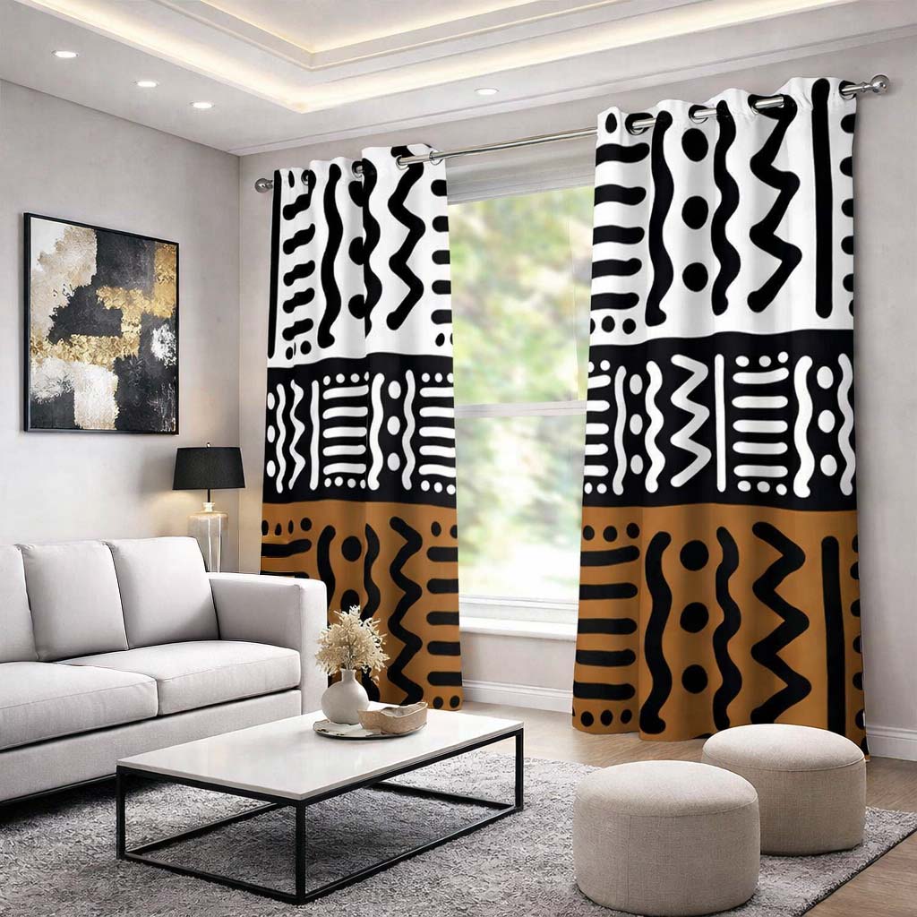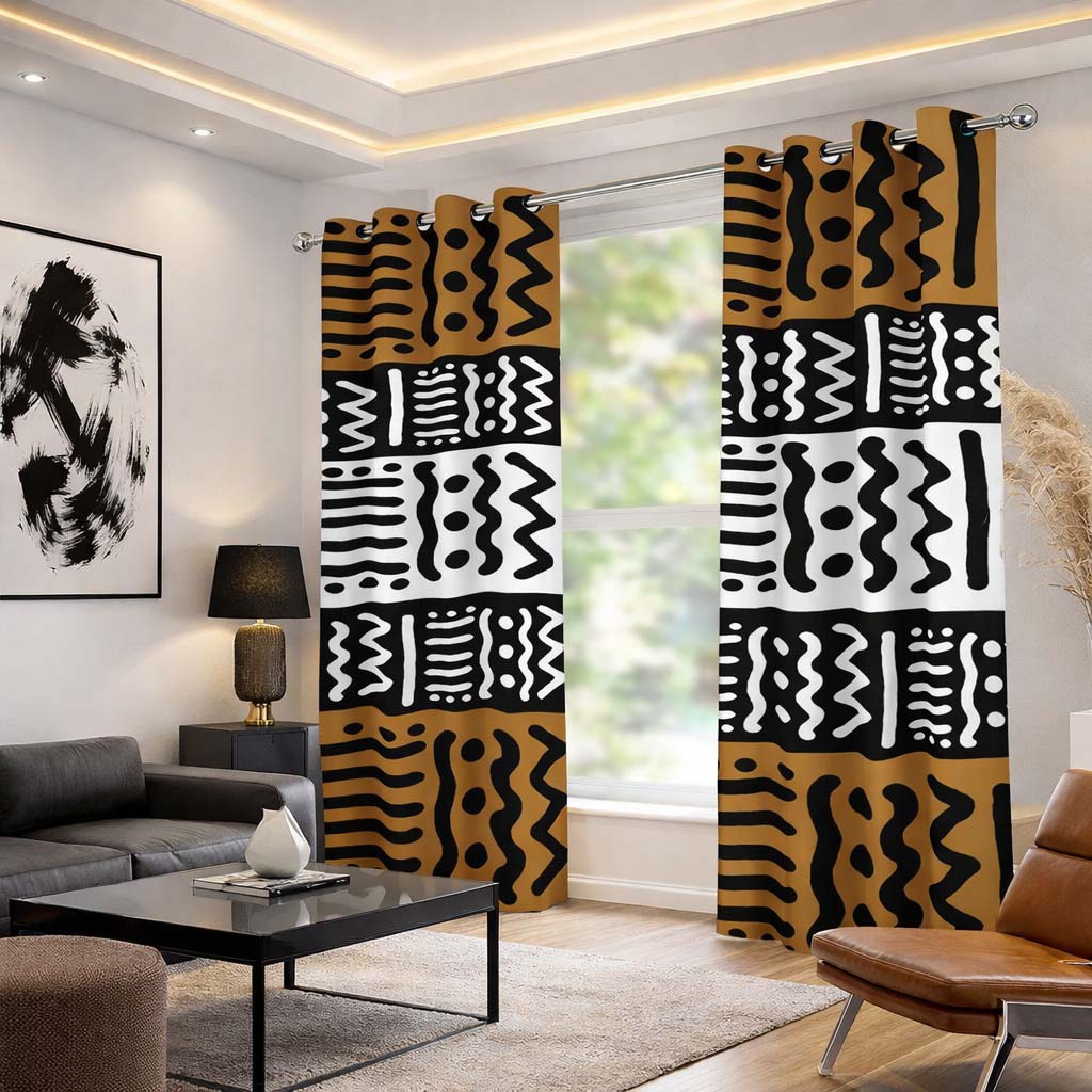 Kuba African Print Curtains Grommet Style (Two-Piece)