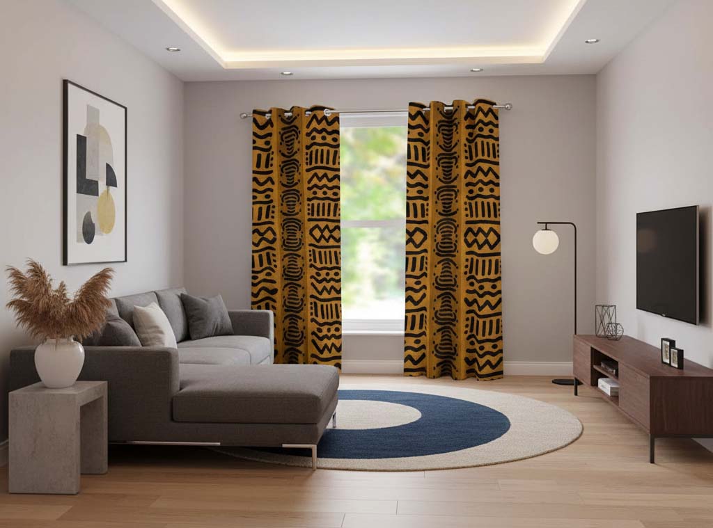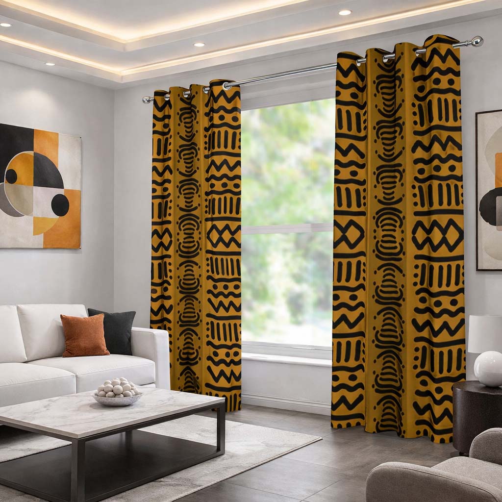 Kuba Print Tribal Pattern Curtains Grommet Brown (Two-Piece)