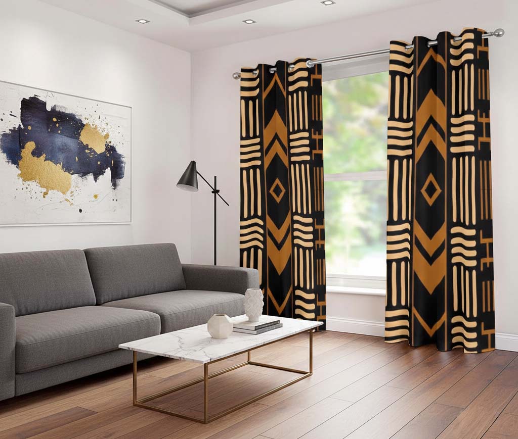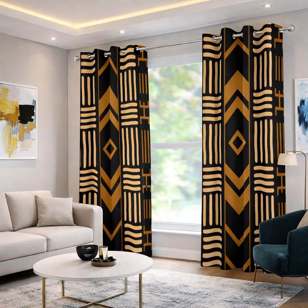 Mudcloth Geometric African Fabric Curtains Eyelet (Two-Piece)
