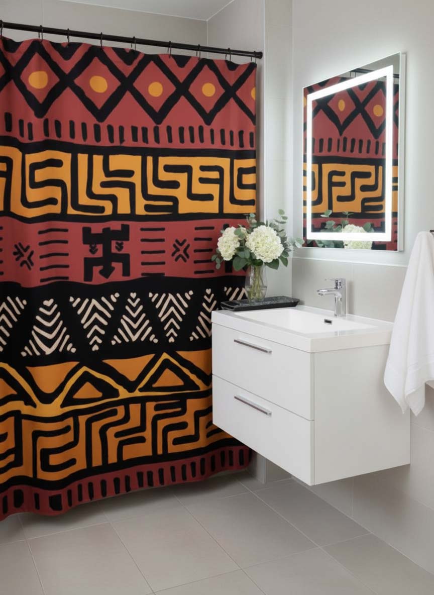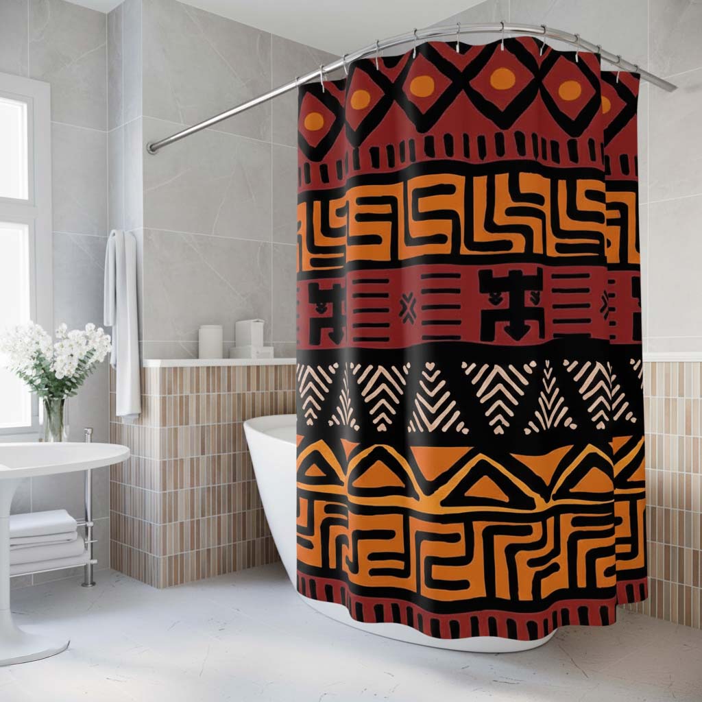 African Shower Curtain Bogolan Unique Bathroom Curtain