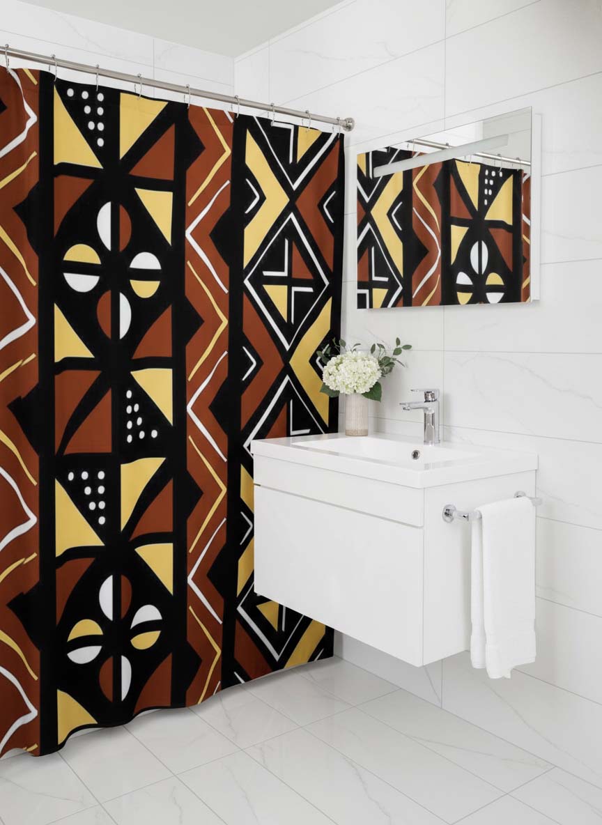 Authentic Mudcloth Shower Curtain African Bathroom Design