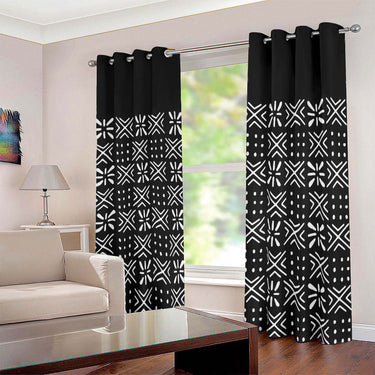 African Geometric Curtains Black & White Eyelet (Two Piece)