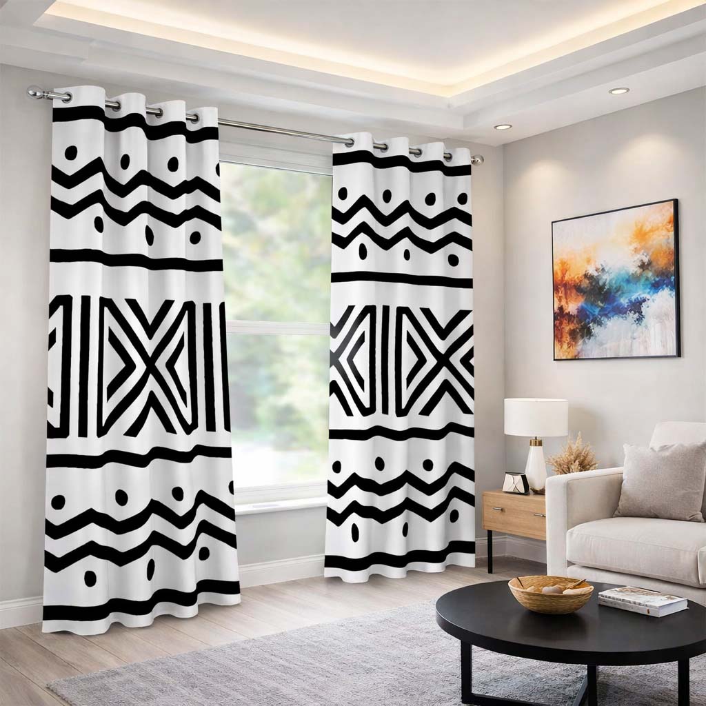 Mudcloth African Print Curtains Blackout Grommet Design (Two-Piece)