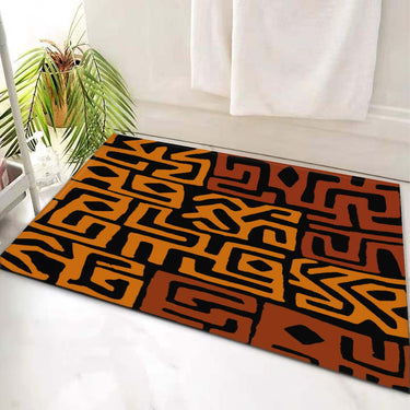 African Patterned Bath Mat | Kuba Brown Bathroom Rugs