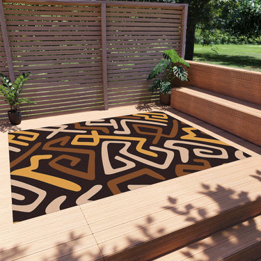 Add a pop of adventurous color to your outdoor space with the Doodle Kuba Carpet African Outdoor Rug. Featuring a bold and colorful brown print, this rug will transform any dull outdoor area into a lively and exciting one. Take a risk and make a statement with this unique and vibrant rug.