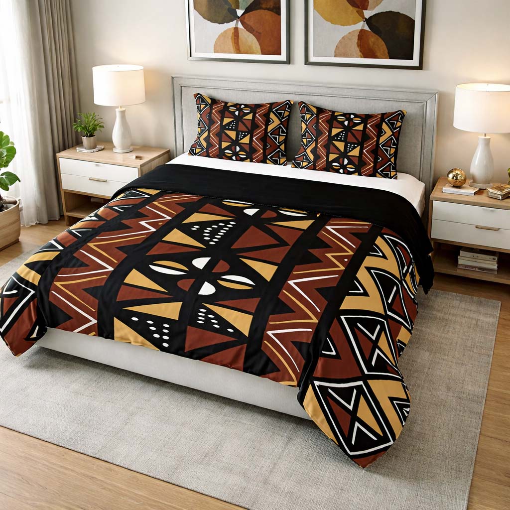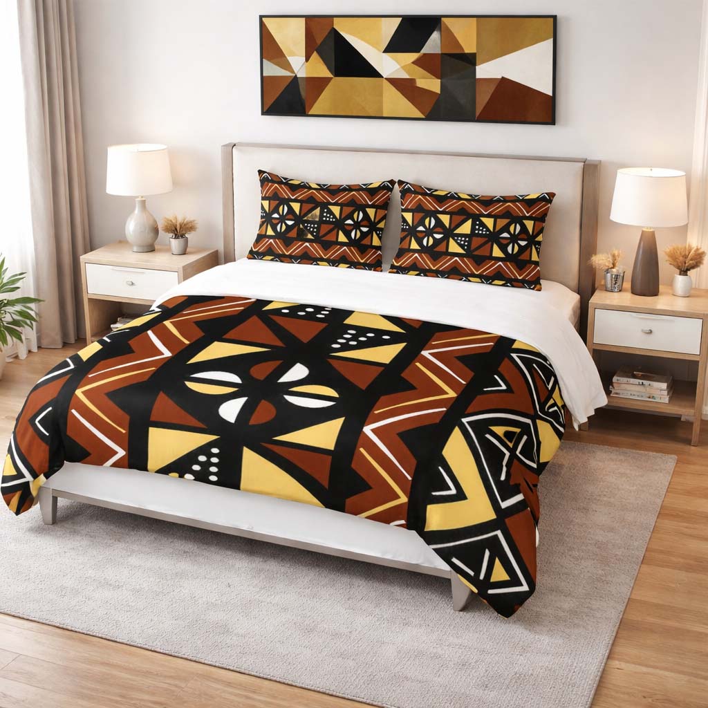Mudcloth Afrocentric Bedding Set Duvet and Pillow Covers