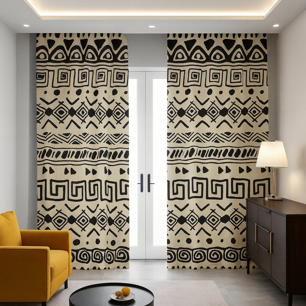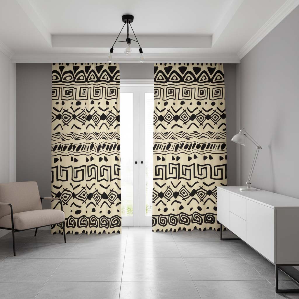 Afrocentric Beige Off White Blackout Curtain (Two-Piece)