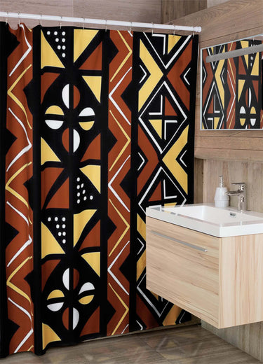 Decorate your bathroom with this stylish African shower curtain featuring an authentic Bogolan print. The rich colors and intricate designs add a unique decorative touch that will give your bathroom a beautiful ethnic look. Durable and machine-washable, this African shower curtain is the perfect addition to any bathroom.