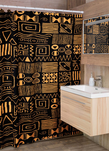 Unique African Print Shower Curtain Gold Black Bathroom Art