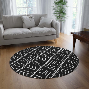 Black & White Tribal Round Rug – Graphic Pattern