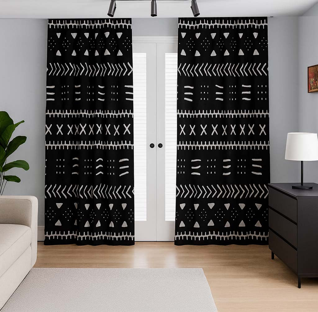 Traditional Black and White Blackout Curtains (Two-Piece)