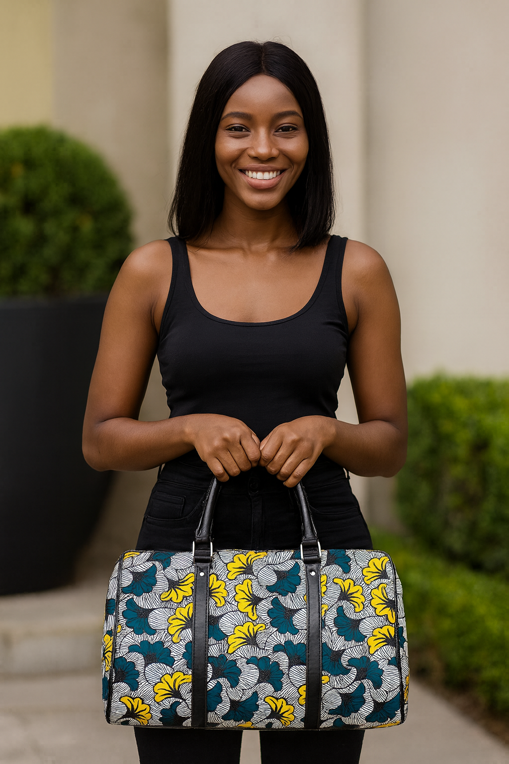 Pack a punch of color on your next adventure with our African Travel Bag! Made of high-quality leather and featuring a vibrant Ankara Wax Floral Print, this bag is both stylish and durable. Perfect for your travels, this bag will keep you organized and stand out from the crowd!