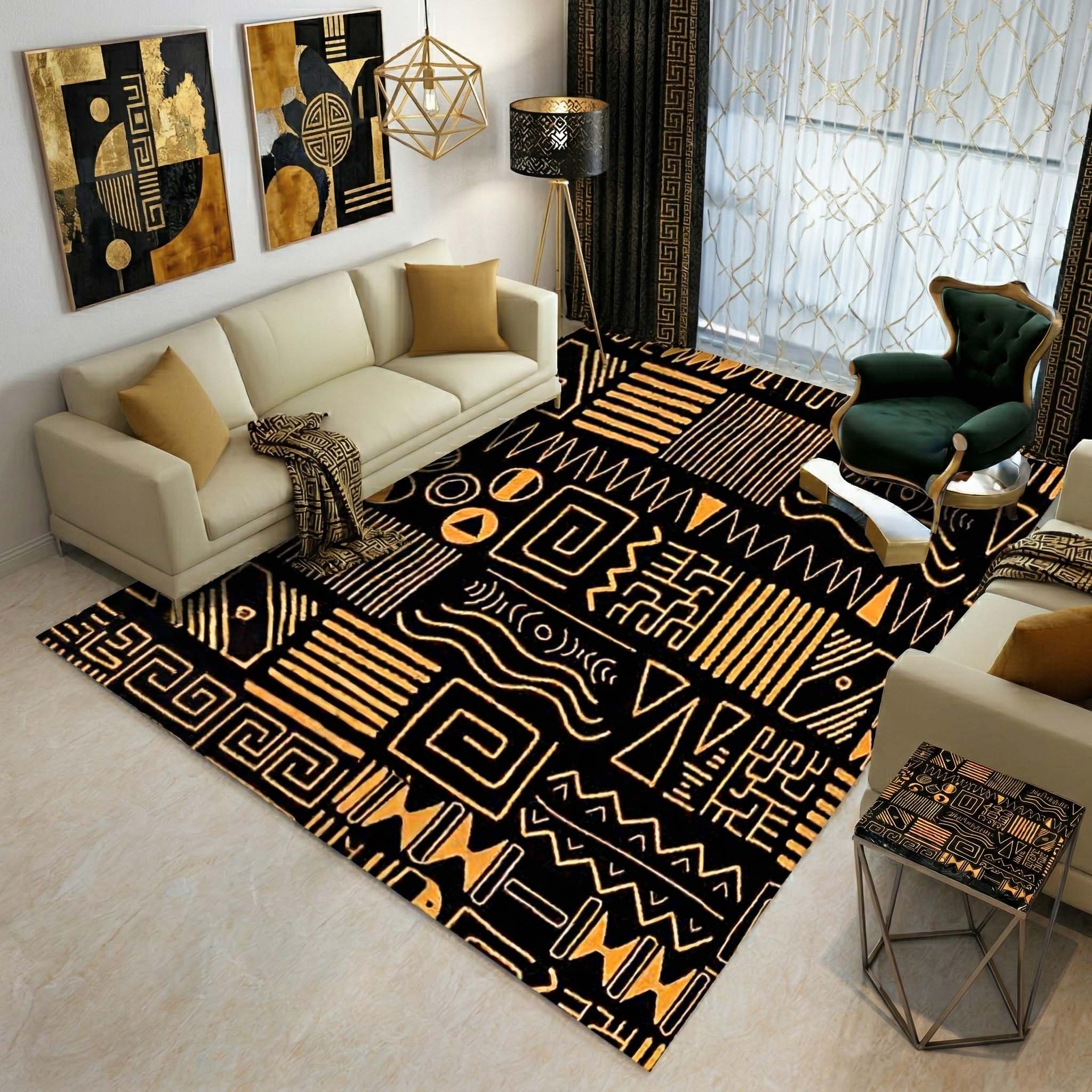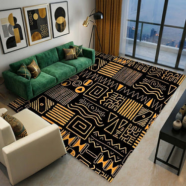 African Black & Gold Rug – Bohemian Style Carpet