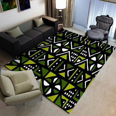Mud Cloth African Area Rugs | Tribal Style Carpet Green