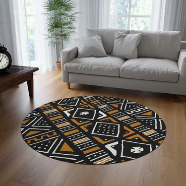 Colorful Mudcloth Round Rug – Traditional Pattern