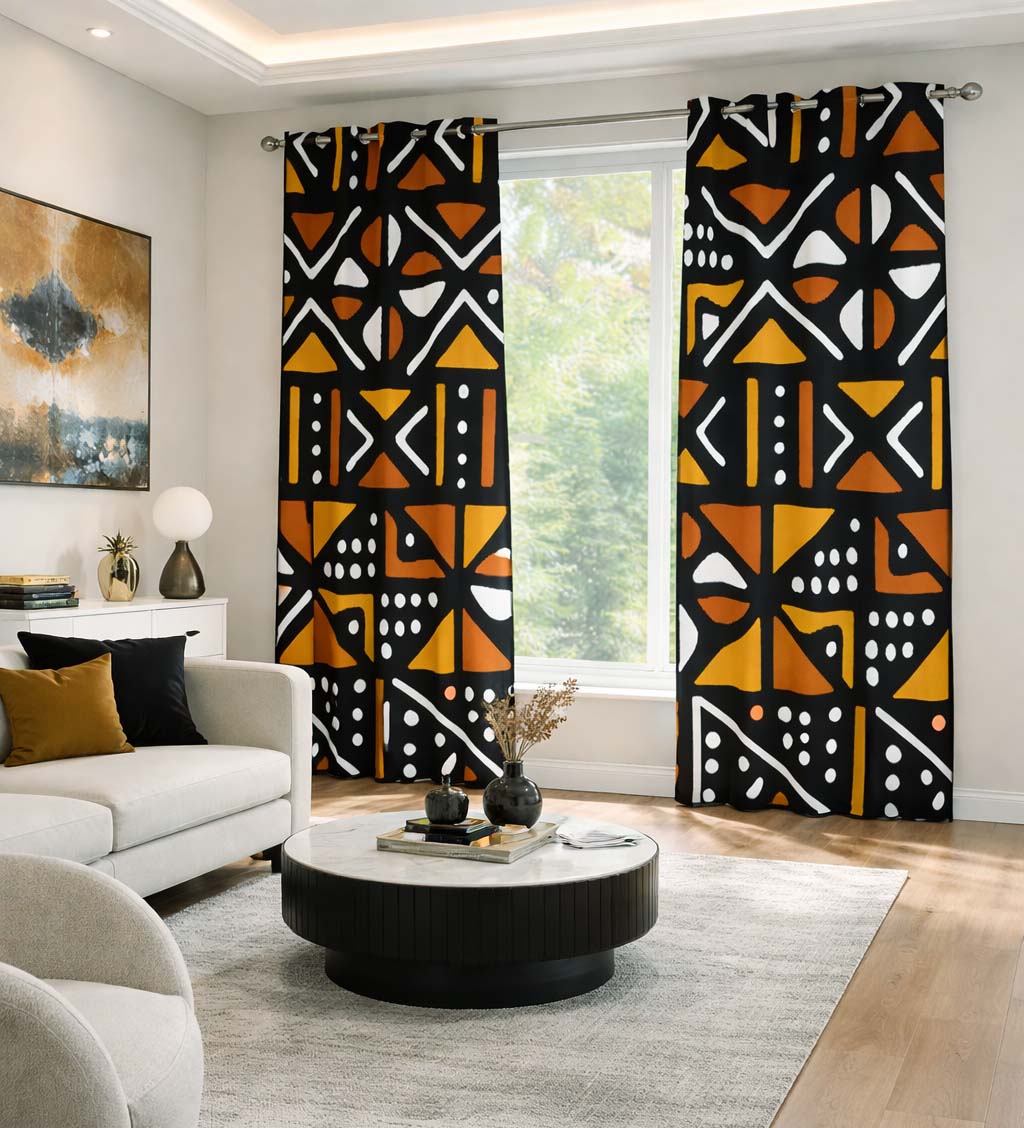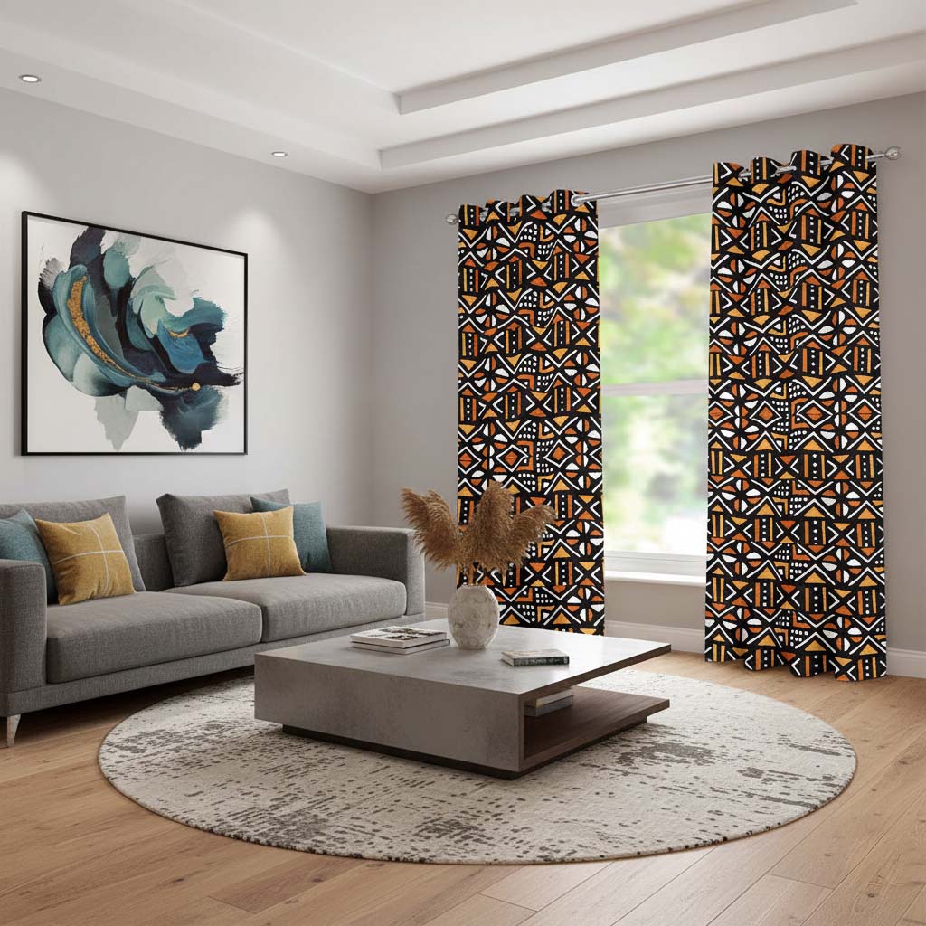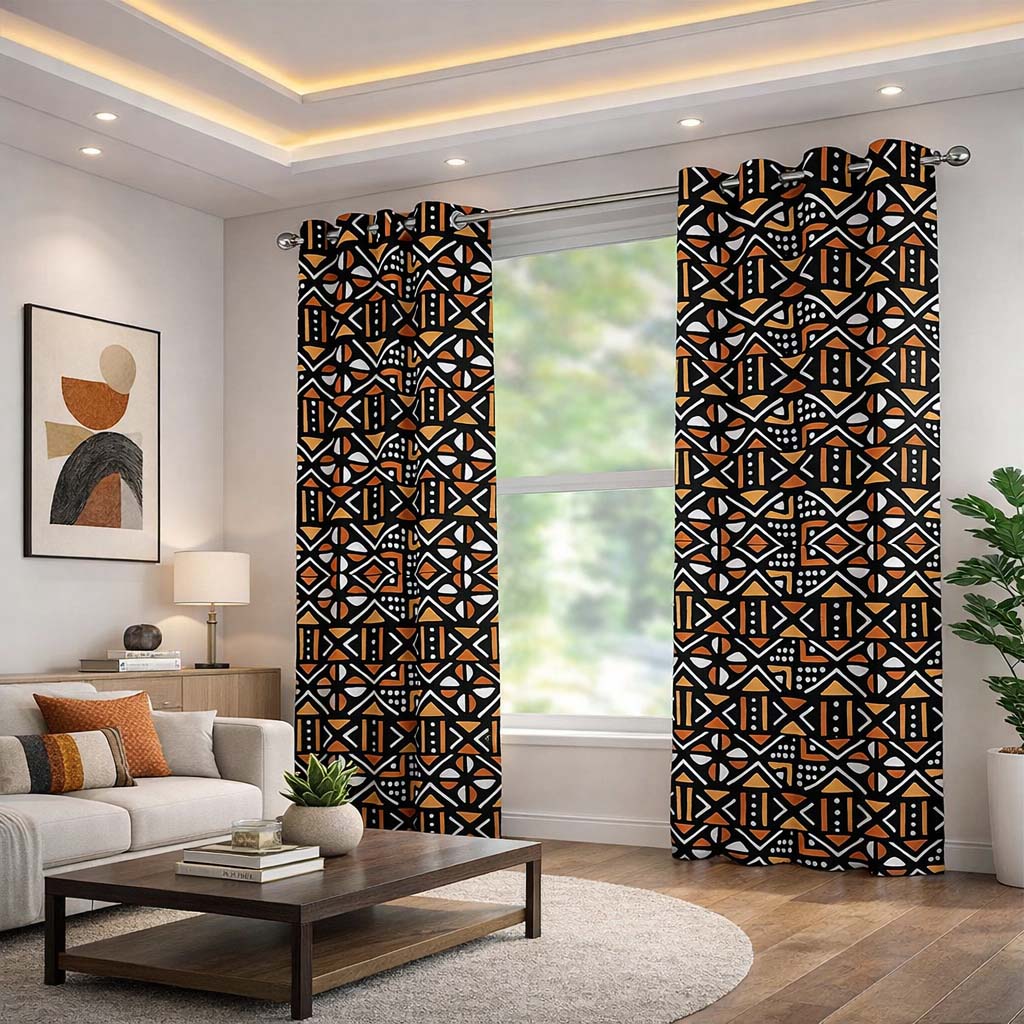 Bring a unique, African-inspired style to your home with our two-piece grommet curtain set featuring a traditional mudcloth print. This high-quality textile adds texture and a touch of culture to any space, and its grommet design ensures easy installation.