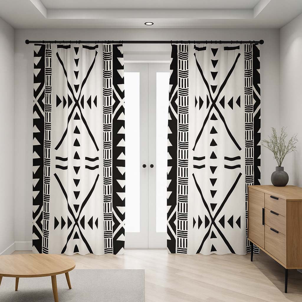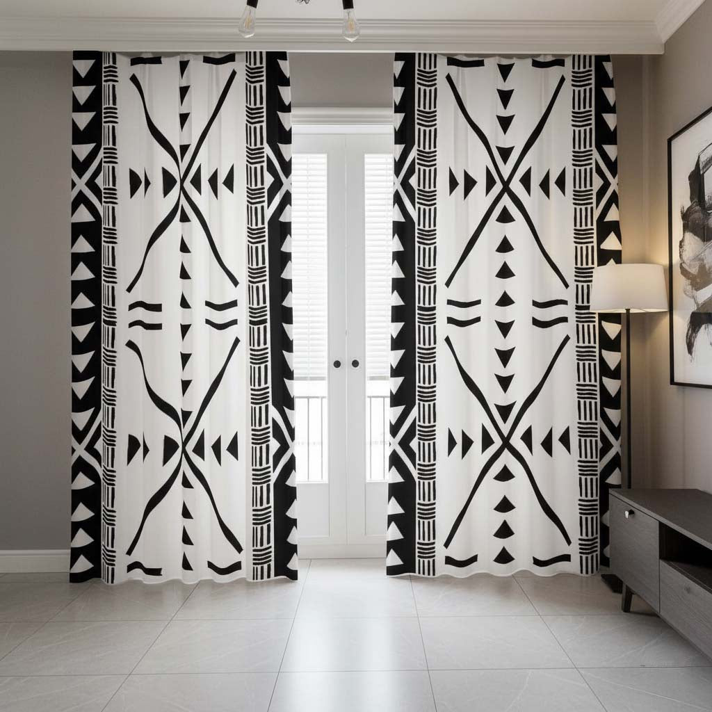 Transform your space with these stunning traditional white and black curtains. The blackout feature ensures complete privacy and blocks out any unwanted light. Embrace bold contrast and elevate your decor with this two-piece set. Take a risk and make a bold statement with these stylish curtains.