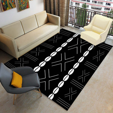 Transform your space with our Tribal Black and White Rug! Crafted with bold, daring patterns inspired by African design, this indoor carpet adds a touch of adventure to any room. Elevate your home decor with this one-of-a-kind statement piece.
