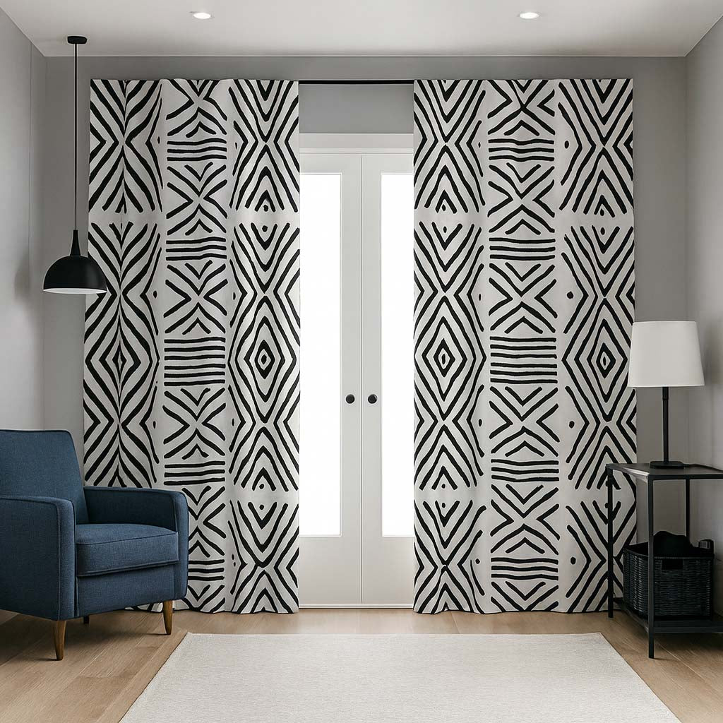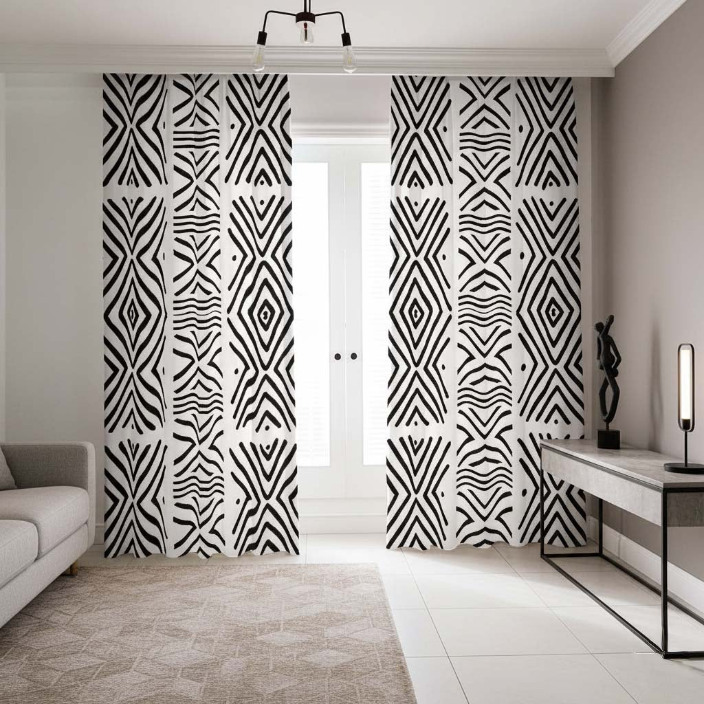 Tribal Zigzag White and Black Blackout Curtains (Two-Piece)