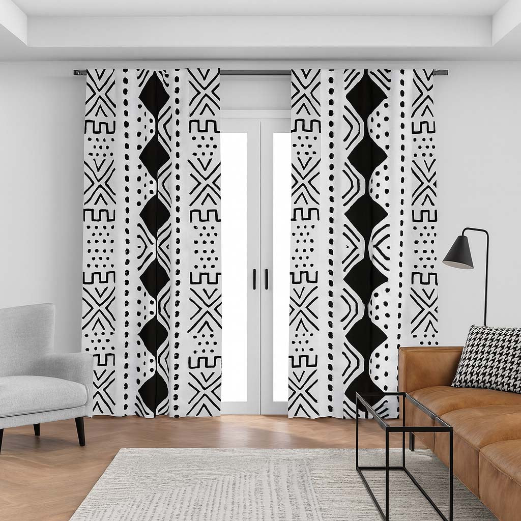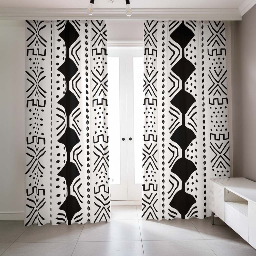 White Geometric Curtains Blackout | African Print (Two Piece)